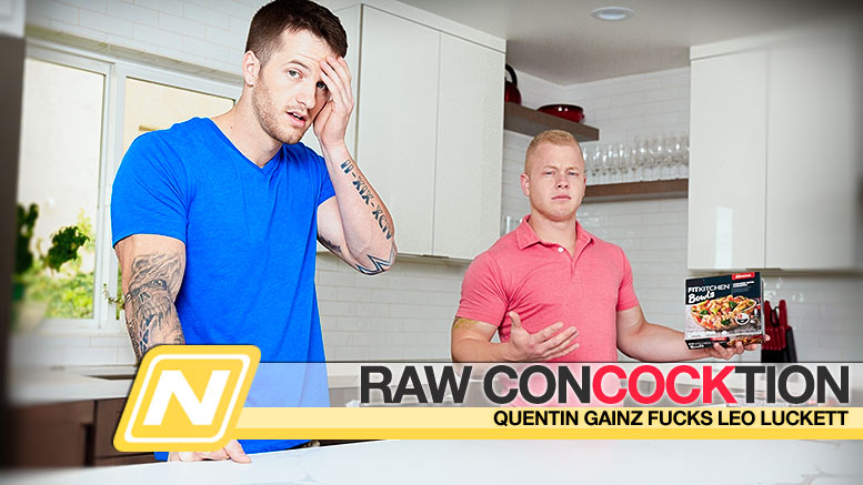 As Leo Luckett makes his way to the kitchen for a pre-workout meal, he finds step-brother Markie More already enjoying a nice protein shake. Leo tells Markie he also could use a protein boost, and Markie gets a sly look on his face, telling Leo he can get some of this protein directly. Leo smiles, telling Markie that’s exactly what he’s talking about, and immediately Markie grabs Leo and lifts him up onto the kitchen island, where Markie begins to suck him off. Leo proves his eagerness as his cock swells up nice and hard, and he gets an early snack when Markie, in turn, feeds him his cock. Leo feasts on it, devouring Markie’s dick and taking it all the way down as he slobs all over the head and works the shaft. Satisfied with his appetizer, Leo is now ready for the main course, as Markie bends him over and plows him from behind. They fuck all over the kitchen as Markie continues to break Leo in half with his bareback dicking, fucking the cum out of Leo before losing his load all over Leo’s freshly fucked hole. And now that both guys have had their morning fill, they can get on with the heavy lifting of the rest of the day.Enjoy!