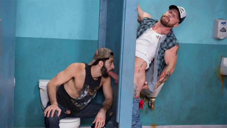 Sergeant Miles is watching Teddy Bear stroke his big hairy cock when he decides to approach the hunk. Teddy is happy to have the company and Sergeant immediately gets on his knees in front of the horny stud. Sergeant gags on the thick dick and takes it all the way down to Teddy’s big furry bush. Teddy doesn’t want to be left out of the cock sucking action and takes his place in front of Sergeant so that he can choke and slobber on his massive cock.