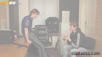 Axel Ross is in charge of Airport Security today. He has Adrian Blaze under arrest. It seems he and his friends had been misbehaving. Axel checks the passport, which it seems is expired. That is a problem, especially as Adrian is due to catch a plane. Adrian offers to do whatever it takes to catch his flight. But he then tries to complain as he is made to rub Axel's groin. Then he must open the pants to release Axel's cock. Without being told Adrian starts wanking on the cock. Then he is told to lick the balls which is does. After that he starts to suck on Axel's cock, rather noisily. The cock is hard as it is wanked and sucked. Then Adrian starts to undress too. In just his underwear he goes back down on Axel's cock and sucks it some more. With that throbbing cock so hard Axel has Adrian remove his underwear and kneel on the chair. Then the big cock slides up the tight ass hole. Adrian moans as Axel fucks him deep and hard. He takes the cock so well though as it goes balls deep in his ass. Axel keeps fucking as hard as he can, pulling out and shoving the dick all the way in again. Then he moves Adrian to lay on the desk for more deep fucking. Adrian wanks himself too as Axel fucks him hard. He moans as he wanks and his hard cock releases the hot load all over his body. Axel keeps fucking hard until he is ready to cum too. then he pulls out and quickly shoot his load over Adrian's face. Adrian then licks the cock to taste the creamy cum.