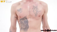 Fresh debut fire with ripped, tattooed Austan T and pierced blonde Hannah Quinn. The scene starts with a quick chat where Austan already grabs and plays with Hannah’s ass before she pours oil all over his body, making every muscle shine. Hannah drops to her knees for a deep, wet blowjob while his skin glistens, then flips him and dives tongue-first into his tight hole for a sloppy, intense rimjob as he strokes himself hard. The pounding gets wild when Hannah mounts him in full Amazon control, then spreads wide in missionary for deep strokes, and finishes bent over in doggystyle getting railed hard until he unloads. Oiled skin, tongue deep in ass, hardcore fucking. Pure heat!