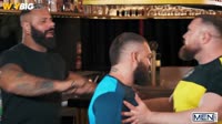 Rival soccer fans Kinkoer and PJ Knox are watching the game at the bar. Despite bartender Alex Marte's attempts to keep the peace, the burly, bearded bears nearly come to blows! Alex breaks it up and calms things down by jacking both the rowdy guys' cocks. Kinkoer and PJ spit-roast the bartender, then suck him. It's Kinkoer's turn to take the bartender's dick as he licks his rival's hole, then PJ gets fucked by the other two before the guys form a train. PJ cums as he rides the others, then Alex and Kinkoer jack off, putting an end to the rivalry... for now!