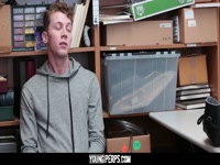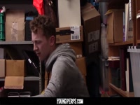 A college student went into a high end sunglasses store looking to swipe a cool pair of shades for the start of school. He thought the display case would make for an easy lift, but the store staff caught on to him. The loss prevention officer finds them on him and decides to cut him a break and let him go… he just has to take his big cock first.