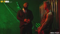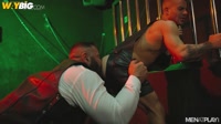 Under the dark, Alex and eager leather boy Allen suck each other off. Alex unzips Allen’s leather jumper and slips his tongue into the wanting hole before sticking his Italian cock deep inside. They move their play session to the leather sling, where Alex continues fucking the hungry power bottom. Alex bangs Allen rough and fast, just like he likes it, before a geyser of cum from both of these studs erupts.
