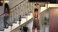 Olaf Sulc looks so sexy in a see thru wrestling suit. His wrists are shackled to the bannister of the stairs as his lady friend descends. Olaf is also blindfolded. The girl joins him and begins to feel him. She tweaks Olaf's nipples and then runs a hand over the sexy body. Olaf's cock is hard as she caresses it through the suit. The the girl reaches inside to feel that cock. She soon has the throbbing cock out and begins to suck it as Olaf moans with pleasure. The cock is wanked and sucked and a leather cockring is wrapped around cock and balls. Then she uses a vibrating wand on the balls and along the shaft of the cock. She sucks the cock more too before removing Olaf's blindfold and attaching clothes pins to his nipples. They are quickiy removed though. Then she strips the suit from Olaf and releases him, having him kneel on a stool. that shows off his hot ass hole as she shackles his wrists behind his back. Then that ass is rubbed and paddled a little. The furry paddle holds the cock back through the legs for licking. Then the paddle hits on the ass. The cock is pulled back and sucked a little before a dildo is fucked into that hairy ass hole. the girl fucks it deep into Olaf's ass and wanks his cock at the same time. He is laid on his back and wanks himself as the dildo is fucked up his ass hole. The the girl wanks him hard and fast until his shoots his cum, which flies out of his cock.