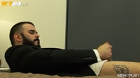 MENatPLAY's Kris Irons takes center stage as the rugged, tattooed plumber turns an ordinary job into a charged moment of self-discovery. Covered in dust and attitude, Kris pauses mid-repair and finds himself drawn to a closet full of sharp suits. Curiosity takes over as he sheds his workwear and slips into tailored elegance, transforming his rough exterior into something sleek and commanding. Watching his reflection, Kris leans into the contrast between grit and polish, letting the fantasy build as confidence and desire take hold in this striking solo scene.