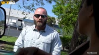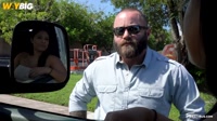 Andy and Serena spotted Mr. Bear, a rugged, tattooed man on his lunch break, his muscles bulging under his shirt as he stood by his truck. His beard, a thick mane, covered much of his chiseled face, and his sunglasses shielded his intense gaze. They could tell he wasn’t the kind of guy to be easily swayed. Serena, always up for a challenge, walked up to him with her trademark charm, offering a chance to film a private scene. Mr. Bear hesitated, shifting on his feet. His deep voice cut through the air: "Not interested." But when we mentioned $17K, his stance softened. He paused, considering the offer. Still reluctant, Mr. Bear eventually agreed. Once inside the van, the usual twist was revealed - Andy would be taking over the scene. Despite his initial resistance, the cash was too good to turn down. Andy started working on him, and to everyone’s surprise, Mr. Bear's body began to respond. The tension mounted, and soon, the camera captured every second of their unexpected chemistry, as the Miami streets blurred outside the window.
